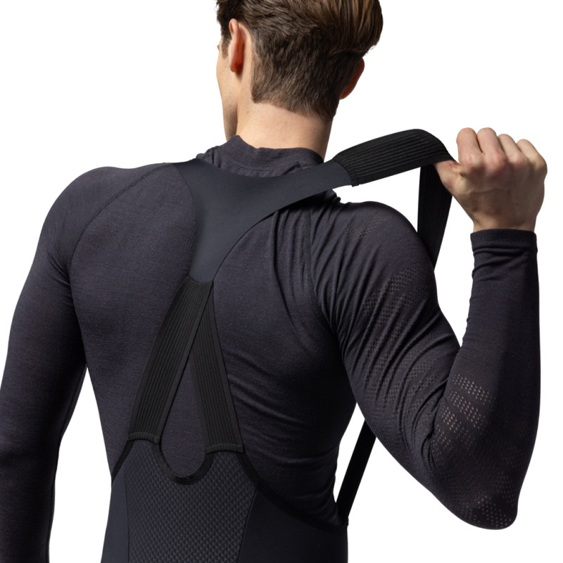 O interior escovado cria microbolhas de ar isolantes, mantendo a temperatura corporal sem comprometer a respirabilidade. O tecido Thermo Snake na zona da virilha beneficia de um calandragem específico que melhora a estabilidade no selim e a sensação de controlo.