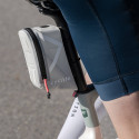 A Cyclite Saddle Bag Nano 01 redefine o que se espera de uma bolsa de selim minimalista. Concebida para passeios curtos e competições, acomoda uma câmara de ar, uma bomba compacta e ferramentas sem sobrecarregar nem desfigurar a sua bicicleta, graças a um perfil aerodinâmico colado ao espigão do selim e a um inovador sistema de fixação magnética que se monta e desmonta num instante. O seu trunfo principal é o material exclusivo LiteGrid-RN200T3, desenvolvido especificamente pela Cyclite. Este tecido ripstop combina dois tipos de nylon de densidades diferentes, tecidos segundo uma técnica proprietária, posteriormente revestidos em ambos os lados e unidos por soldadura de alta frequência. O resultado: uma impermeabilidade robusta, uma leveza extrema (apenas 64 g) e uma superfície fácil de limpar após passeios molhados. O fecho de correr perimetral garante um acesso rápido ao conteúdo, mesmo em movimento. A Saddle Bag Nano 01 está disponível em duas cores — cinzento claro e preto — para combinar com qualquer bicicleta de estrada aerodinâmica ou gravel. O kit de entrega inclui a bolsa, o suporte NANO UNIVERSAL MOUNT, uma película de proteção para o quadro e o manual de instruções. Um RADAR MOUNT para luz traseira ou radar está disponível separadamente. Características técnicas: - Disciplina: bicicleta de estrada, gravel, bikepacking de curta distância