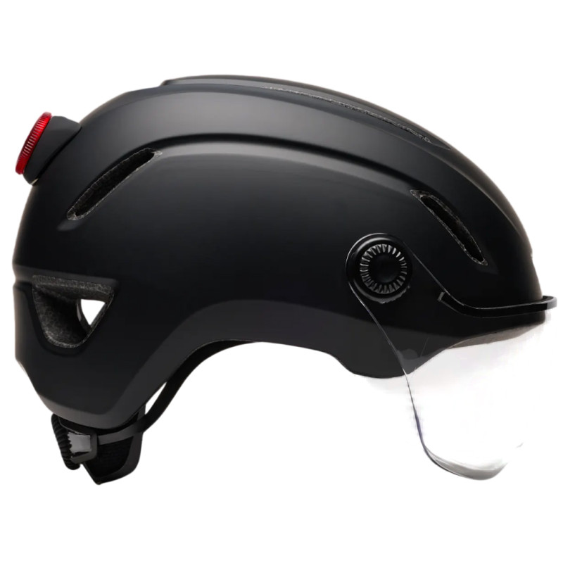 - Viseira transparente moldada e ajustável com iluminação LED traseira